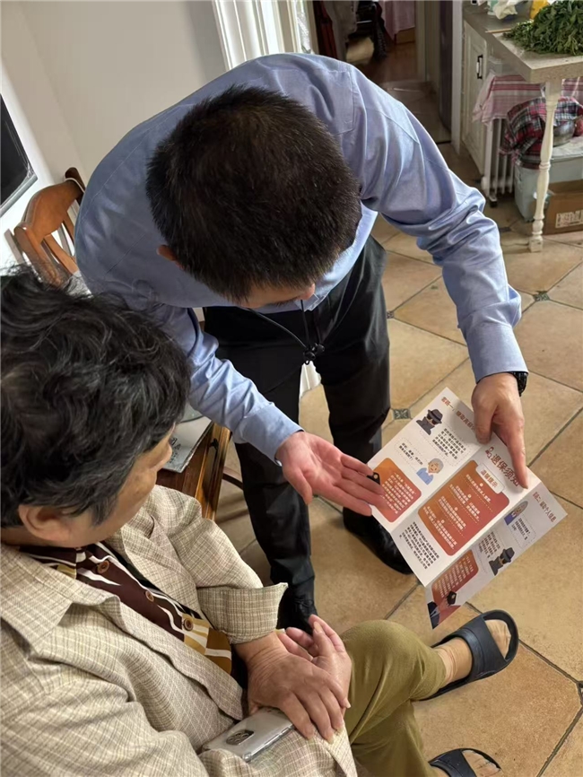 运用顾客来访的契机,工作人员主动向前来办理业务的老年顾客发放反诈防骗宣传折页,并结合其办理的具体业务,适时提示相干危机点,讲解保险合同中的关键条款,协助他们明晰自身权益。经过这种常态化、嵌入式的宣教方法,不但提升了老年顾客对金融危机的认知,也进一步优化了业务流程,让他们在享受便捷金融业务的与此同时,感遭受被尊重、被关怀的暖心感受,体现了公司的人文关怀与公众责任。