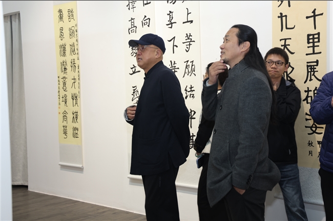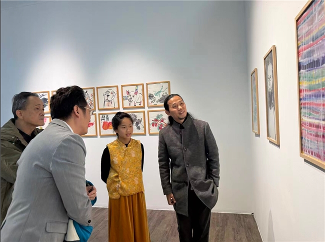 观赏完作品后,曹新元教授难掩赞许:“11岁能有如此功底与创作灵气,着实难得!婧琪的作品里有童真的纯粹,更有保持的力量”。并给与孩子期许“期望琪琪在书画的道路越走越宽,越走越有兴趣,与读书并肩走出有完成人格的奇迹!”方清平先生的致辞则幽默与练达,为开幕作结,他从“趣”字入手,妙语解读画中天真,引得现场掌声与笑声持久,将气氛推向高潮。”开幕式后蒋熹多先生、曹新元教授、方清平先生绕场参观,逐幅驻足品读作品,不时与身边的崔婧琪沟通。曹新元教授指着一幅齐白石老先生的画像说:“刚才那个牡丹,齐老先生96岁时画的就是这个风格”足见曹教授对少年的殷切鼓励。