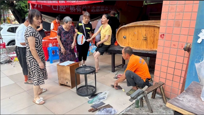 行动现场热闹非凡,磨刀师傅手艺娴熟,一把把锈迹斑斑的菜刀在他手中很快就变得锋利如新,居民们拿着磨好的刀具,脸上满是满意的笑容。