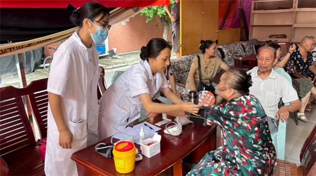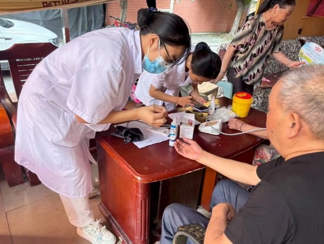 体检区域,医护人员认真为居民测量血压、血糖,解答关于健康养生的疑问,给予专门的健康指导。